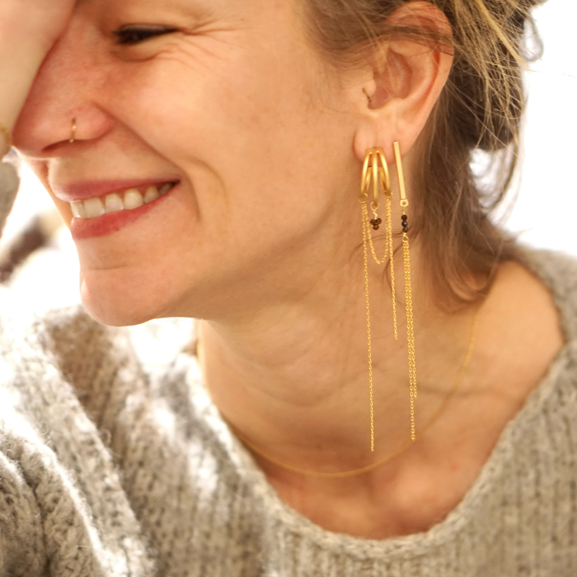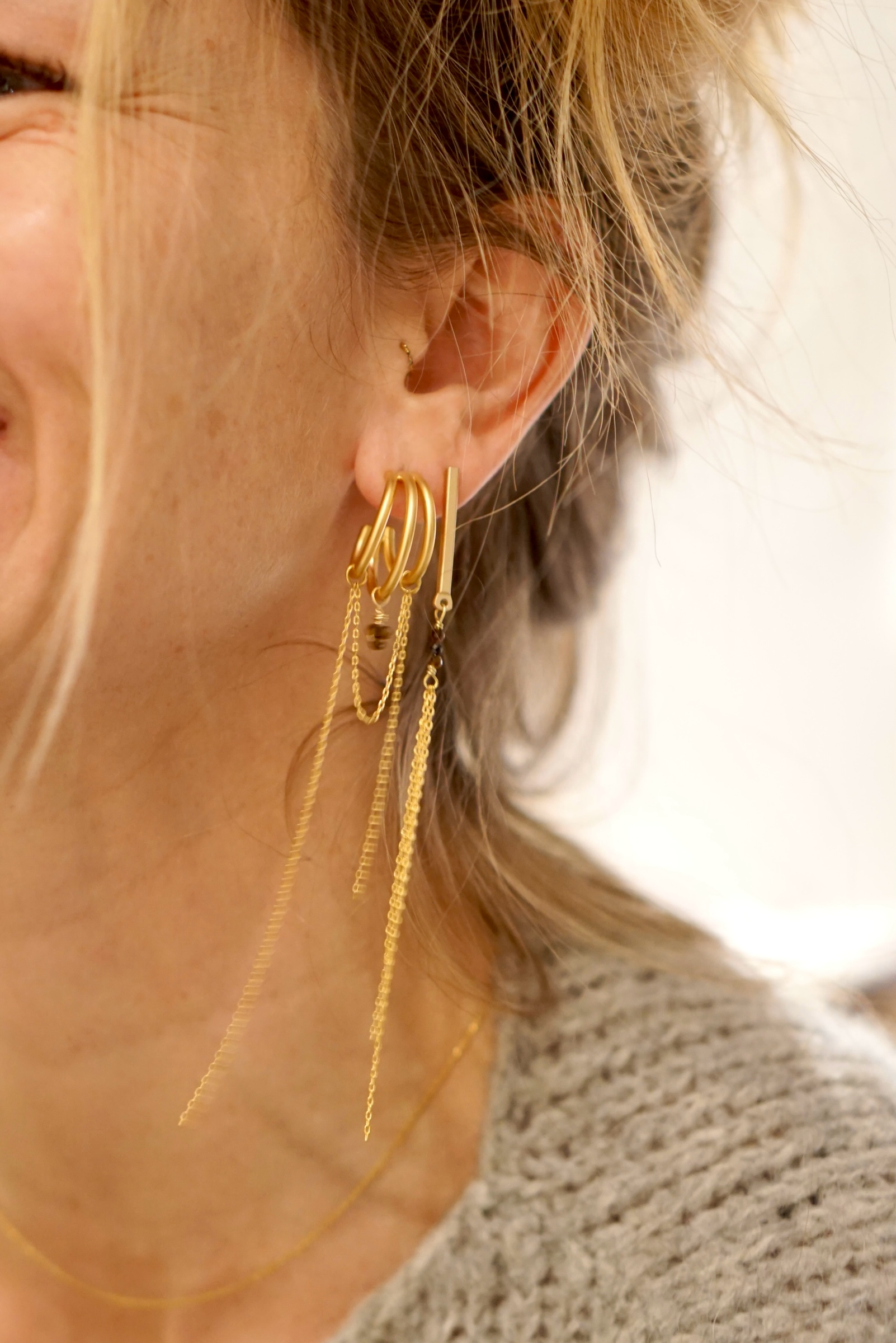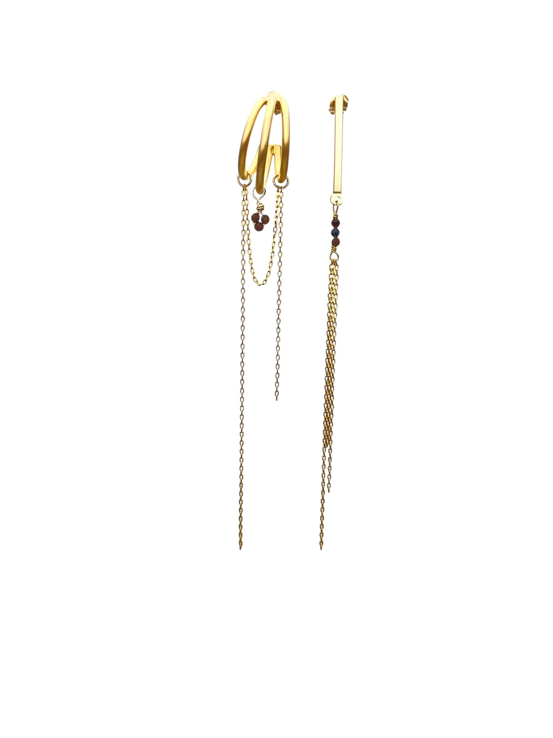 Laiton plaqué or mat. Paire asymétrique. Œil du tigre.